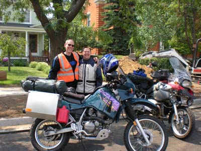 What a ride!! The afternoon of July 22, I left Holland (Michigan, N42 47.206 W86 06.890 ) with my riding buddy and fellow M.E.A.T. Club (Men Eating Animals Together) member, Barry Bandstra, to ride our motorcycles to the Canadian border in Montana. We were heading to the starting point of The Continental Divide Trail (CDT) in Roosville (MT) and looked forward to reaching Antelope Wells (NM). All-in-all, the CDT (also called the The Great Divide) is 2497 miles long, the vast majority of the trail (almost 90%) logging roads, mountain roads, and gravel. What an off-road adventure! Following maps drafted by the Adventure Cycling Association and our trusty GPs's we covered great sections of Montana, Wyoming, Colorado and New Mexico. Barry on his 1999 Kawasaki KLR and I on my '05 BMW R1200GS parted ways in Albuquerque (NM), a story that will unfold on this page. It was an amazing, beautiful, challenging, life-giving ride. I'll repeat the ride tomorrow, but maybe not with a bike as large and heavy as mine. Due to a heavier than usual workload this semester, I was somewhat less-prepared for this ride, though I knew that the preparations required were no different from the ones I did for the Alaska ride of 2006. My bike, with new oil, was ride-ready. I read Michael McCoy's Cycling the Great Divide: From Canada to Mexico on America's Premier Long Distance Mountain Bike Route and got the Great Divide Mountain Bike Route map set from the Adventure Cycling Association. I also peaked at the CDT Society site. The maps and book are great, and despite both of us having GPS's we got lost MANY times. Find a map of the CDT here. Barry kept a blog about the ride. Do check out his page for statistics and graphs. Day 1 — Wednesday July 22, 2009 Barry and I left Holland while Michelle was watching a big trench being dug in our yard as a new sewer line was installed. I married a kind and gracious person, allowing me to follow dreams and desires. All day I was anxious to get on the road. Jami and Michaela hovered around me, anticipating the farewell.