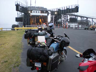 We arrived at Pinotage, our cottage on Upper Silver Lake dodging a storm and bbq-ed Boerewors (South African sausage), made for me by Montello Meat Market in Holland. Barry and I turned in early in anticipation of taking The Badger from Ludington to Manitowoc, WI. Day 2 — Thursday July 23, 2009 Thick fog off Lake Michigan greeted us as we made way to Ludington. The first two hours of the ferry ride was fog-filled as well. We had our first of many conversations with strangers who first think we're crazy and then express their envy. It seems everyone wants to ride the CDT! We arrived in Manitowoc around 12:15 and hit the road, calling it a day in St. Cloud, MN around 6:45pm. We called an AmericaInn our home and after a dip in the pool ate dinner at the RJ Grill nearby. Today we did a total of 400 miles driving plus 60 miles across the lake (which took 4 hours plus.) Lined up to load onto the SS Badger: