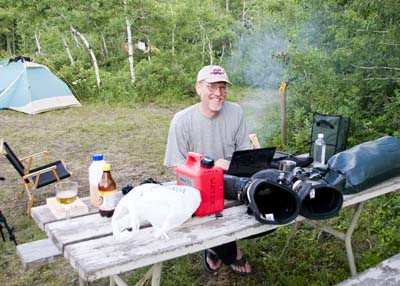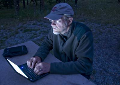 4th of July Campground and Barry updating his notes on his trusty netbook.