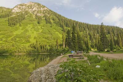 For a minute I thought we're stuck without passports. Red Meadow Lake below.