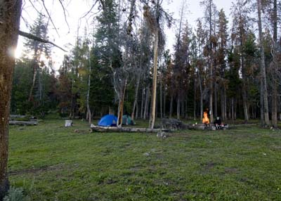 Our campground in Ovando next to the river that nearly froze us into ice cubes.