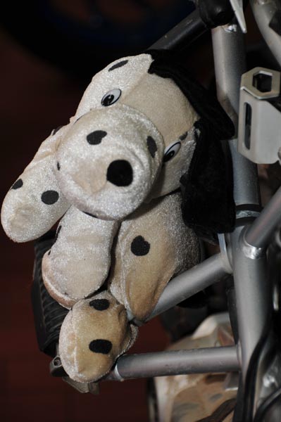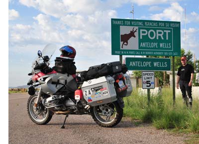 The dog my girls gave me looking sad being indoors and stranded. Day 15-19 — Wednesday August 5-8, 2009 Through a relationship between Sandia BMW Motorcycles and The Drury Inn and Suites, we stay in a hotel with a two-drink Happy Hour accompanied by enough snacks to make dinner. The next morning you get a full breakfast, buffet style. Not a bad place to stay for $90 a night. Having the day ahead of us, with the vehicle that Jared offered us, we saw the sites of Albuquerque, visiting a museum, the planetarium, watching an iMax movie ("The Enchanted Sky: The Digital Universe"), and exploring the historic downtown. Barry broke a mirror laying his bike down on Blow Out Pass, and we found a replacement at the local Kawasaki shop. The next day we returned. With a promise of a two day return on the bike, Barry said he'll wait with me. Around 2:30pm we were eager to get on the road, but when the technician started the bike up, the clutch made a clatter I've never heard before. He took it for a test ride, so too the service managers, and soon it was discovered that BMW installed the wrong parts!! I was disappointed, for now we missed the next day delivery option yet again. There was very little I could do as they cracked open the BMW again, this time removing the parts they've just installed. Barry and I spoke and not knowing how long I might end up in Albuquerque, we decided that he will continue his ride to Antelope Wells. We parted ways with Barry heading for the CDT again and I headed back to the Drury Inn. Saturday morning came and I was anxious, for if the parts did not arrive, I will be stuck until Tuesday. Sandia BMW is open full day on Saturdays, but closed on Mondays. Around 10am the FEDEX truck brought the boxes and 3 hours later my motorcycle was ready to go. This time there was no clatter and the bike tested true. I said my good-byes to a crew I got to know well, paid my large bill, and decided I'll make my way to Antelope Wells and finish my ride before heading back to Michigan. I continued south and slept in Deming, NM, about 2 hours from Antelope Wells. Barry made it to Antelope Wells on Friday the 7th. Day 20 — Sunday August 9, 2009 Last night I wondered whether I can do the last two hours to the border, and I'm glad I did not continue then. LOTS of jackrabbits, pronghorn antelope, and cows in the road. The road was my own, the only vehicles I came across were Border Patrol vehicles. I loved the "Beware of poisonous snakes" signs around the border crossing with signs of rattlers about to attack. I missed out on all the off-road sections of the CDT in New Mexico, and one day will have to return to do those. But I'm glad I decided to end the ride at Antelope Wells. Day 21-23 — Sunday-Tuesday August 9-11, 2009 The ride back to Holland was uneventful. Roswell was MUCH more of a town than I ever imagined. Somehow I had a small, alien crazy town in mind. It was large with all the chain stores you can imagine. Once on I40, I had to sit out a torrential thunder storm in Amarillo, Texas, one that blew over a few trucks and caravans. As I was sitting out the storm, a Harley rider and his partner flew by the rest stop I had as shelter. I only shook my head, for I could not keep my bike in the road as the wind blew me all over. I made it all the way to Shamrock and stayed in the same hotel as last year's Route 66 ride. Since they had me in the computer, checking in was a breeze. Monday I made it to just south of Chicago when heavy mist made early evening riding dangerous. I decided to stop 4 hours from home. The mist was still present on Tuesday morning, but the ride home was uneventful. 11am on August 11, I arrived to be with my girls. Barry was an amazing riding partner and stood by me through oil changes in the middle of nowhere and a bike without a rear brake or a clutch. Anticipating a ride to Tierra Del Fuego a few years from now, I do hope that Barry can join me. I think both of us will be on Kawasaki KLRs ;-)