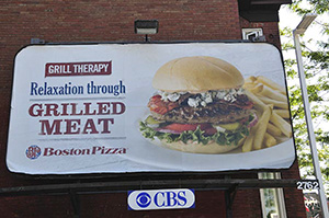 Day 1 — Friday July 29, 2011 Barry and I left Holland after a thunderstorm earlier the morning. We remained dry, though, and soon saw blue skies and sunshine. It turned out to be a lovely day as we ran hard to gain miles. Our aim was friends in Montreal. We crossed into Canada at Port Huron/Sarnia without trouble and made our way towards Toronto. We made good time until we were almost through Toronto and came to a standstill in rush hour traffic on the Friday afternoon before a long weekend. Every living person wanted to leave Toronto, and they all went northeast, direction Montreal. And did I mention it was hot?! We finally got off Route 401, tried to bypass the traffic, but lost so much time that we ended a few hours short of Montreal. Finding a campsite on my iPad's Woodall's Campground Directory led to nothing and we got a hotel for the first night. The local diner served large portions of food that did a good job filling us and rehydrating us, but could not prevent me forgetting the place's name. Some part of me, I guess, does not want to return there soon. I did not keep detailed tracks but I estimate we did 650 miles in hot conditions. Day 2 — Saturday July 30, 2011 We left our hotel and headed towards Montreal. An uneventful ride was enlivened by road construction as we followed the signs for Quebec City. Gassing up in Brockville, we saw an interesting sign for "Grill therapy" (See picture below). As members of the M.E.A.T Club, Barry and I immediately knew what was meant by the billboard.