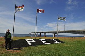 Breakfast on the ferry was pretty good We had to make some time to catch the ferry to Newfoundland in Nova Scotia, and cut across Gaspesia following RT 132. It was a fun road to be on, following the Salmon River as we headed South and East. Crossing into New Brunswick the scenery changed with lush natural forest and many warnings to watch out for moose. We followed RT 11 along Chaleur Bay eating up miles. As we reached Bathurst late the afternoon, tired and hot, we decided to call it a day. Seeking some respite, we hotelled it at the Comfort Inn, which was walking distance from a few pizza places. We decided upon Pizza Delight and had a great meal. As a bread lover I appreciated the fact that numerous breads with spreads were available and you toasted them yourself. Day 4 — Monday August 1, 2011 Today we're headed to Prince Edward Island. Following RT 11 and then RT15 we arrived in a windy, but sunny PEI. After checking in at the Tourist Information Office and reserving a tent site for that evening before we would catch a ferry to Caribou, Nova Scotia, we were excited to explore the island for the day. Barry mentioned to me that Japanese tourists like to get wed at Green Gables and we saw a few busses that would fit that description, each passenger armed with a camera and some with two. Beautiful farms, mostly potato but also some canola and corn, welcomed us. Soft shoulders on the road prevented any photos, but the memories will last.