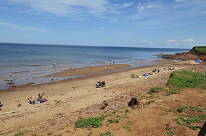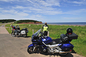 We then explored the red sands of Cavendish Beach before taking back roads to avoid Charlottetown to go to Woods Island. Arriving at the Northumberland Provincial Park we received our site and trying to get back on the bike, I promptly dropped it. A seasoned dropper after the Continental Divide Ride, I rolled away and no harm was done to ego or bike. Our site in the Northumberland Provincial Park was of the best, right on the Northumberland Strait looking towards Cape Breton Island. Barry set off to get us beer and something to eat and after an hour returned with some beans. We were some ways away from any civilization. Barry helped a young couple inflate their air mattress and we received information for the ride back about the Fundy Coast.