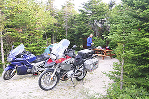 With an aversion for interstates, Barry and I planned on riding home on secondary roads, even if it slows us down a bit. By now our homing instincts kicked in and we planned no more siteseeing stops. Asking the table next to us about directions, the man suddenly mentioned the word "sabbatical" and I commented that he must be an academic, since only academics use this word. It turned out that he teaches at Bangor Theological Seminary and, when he heard Barry's last name (Bandstra), told us with a sense of surprise on his face that he uses Barry's books in his class. What a small world we live in. We left the Eagles Nest Restaurant vowing to return and continued on RT 9 and then RT 2 as we crossed Maine east to west into New Hampshire. We finally made it to Gorham in the White Mountains and home to Mt. Washington. The town was bustling, but I pondered that the we saw the Apalachian Mountains that form the White Mountains in Newfoundland! After our late lunch of lobster roll and carrot cake, we decided to skip dinner.
