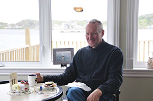 Barry catching up on email. The first home we saw approaching Port Aux Basques