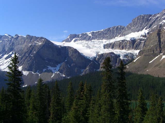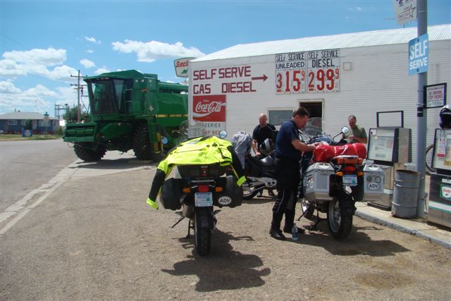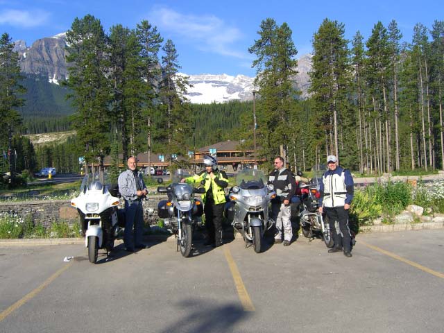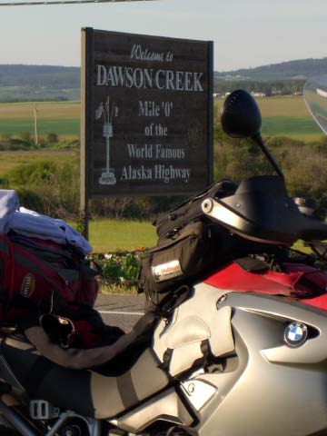 Day 5/July 13: Ice fields Parkway: Radium Hot Springs to Dawson Creek via Lake Louise, Jasper, and Grande Prairie. We continued along RT93 to breakfast in Lake Louise, crossing the Kootenay National Park and the Rockies in brisk 45 degree temps. Leaving Radium Hot Springs at 6:30 am, we encountered little traffic and surprisingly no wildlife. In Banff National Park and Jasper National Park we saw some impressive views of retreating glaciers, ice fields, and glacier lakes, but also the back view of many RVs. In Grande Prairie we quickly hydrated ourselves since the 105 degree heat continued. We then pushed on to Dawson Creek, "Mile 0" of the Alaska Highway, only to run into road construction. We camped for the first time on the trip, initially unable to find our camp site (from the Milepost). To our surprise and obvious dismay, the campground has become an RV park only. The manager must have seen how tired and hot we were and not only gave us permission to camp amidst the RVs, but also sold as a few cold ones. Single malt for dessert. 598 HOT miles.