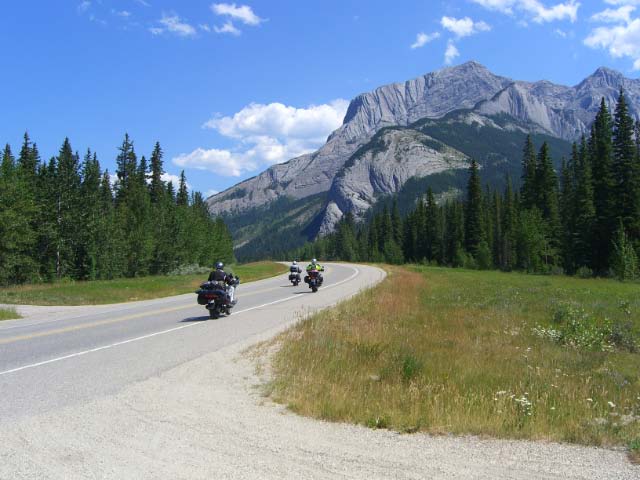 Day 3/July 11: Fargo to Great Falls (MT). Today was a long day in 105 degree heat, the first of many to come. We ran west on I-94 and then onto Montana HWY 200 to Great Falls. Tired and hot, we got a hotel right on the Missouri River and had a great meal at "The Breaks Ale House and Grill." All in all, good wine, great food, and a very hot 753 miles! Day 4/July 12: Great Falls to Radium Hot Springs (BC, Canada). Following RT89 north we had breakfast at Buck's in Choteau, were briefly misled by my Zumo, and finally got to Glacier National Park's St. Mary Visitor Center and the beginning of the "Going-to-the-sun" Road. What an amazing road, cutting across the Rockies. We saw Dall sheep and of course impressive scenery. At Roosville we crossed into Canada in 117 F degree heat. That is HOT shouted out loud! Even the border patrol officer felt sorry for us as we whisked into Canada. Following RT93 north we came upon a Harley Davidson that crashed. As we slowed down a Honda Civic overtook us and nearly ran into the downed bike which had crossed lanes. We arrived in Radium Hot Springs too tired and hot to seek out a camp ground or the hot springs. Today, a scenic 432 miles.