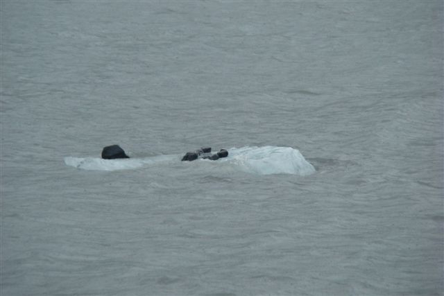 Day 16/July 24: Seward to Palmer. The rain persists. We visit the Kenai Fjords National Park with Kenai Fjord Tours. There is a storm blowing in and the seas are high. Many folks got a 6-hour dose of seasickness. Luckily Nick, Loren and I remained fine as the boat avoided "bergibits"--chunks of floating ice. Highlights include seeing the Holgate Glacier calving to a thunderous noise and an instant tsunami. The Holgate Glacier is part of the Harding Icefield, a massive area of ice and snow that covers much of the Kenai Fjords National Park. Also, we see puffins, sea otters, whales real up-close, sea lions, and many different sea birds. The folks of Kenai Fjord Tours know their business and the geology and history of the area. I recommend them highly. It is 3pm and we leave Seward to start our return trip. We sleep in Palmer, northeast of Anchorage. Trip meter: 168 miles.