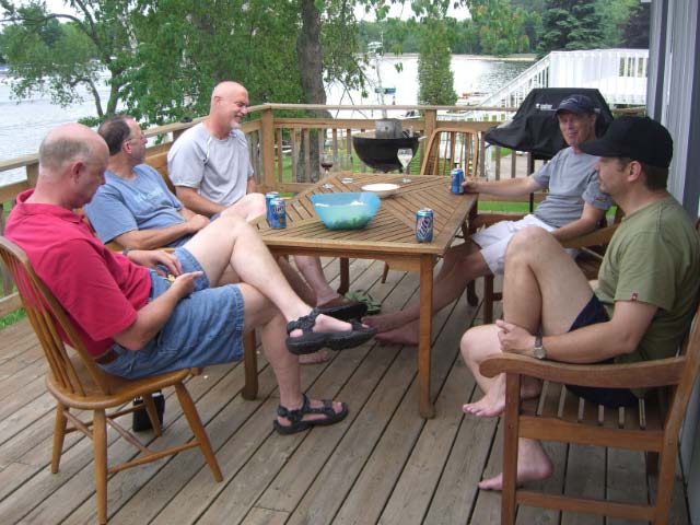 A (not so) brief ride report: Day 1/July 9: We (Left to right: Blane- a good friend and my BMW Motorcycles of Grand Rapids dealer, Loren, Matt, Mark, myself, and my cousin Nick from Hermanus/South Africa) left our home at 3pm to spend the evening at our cottage, Pinotage, near Mears, 75 miles north of Holland). For dinner: Beer, wine, South African Boerewors, some single malt, and lots of anticipation.